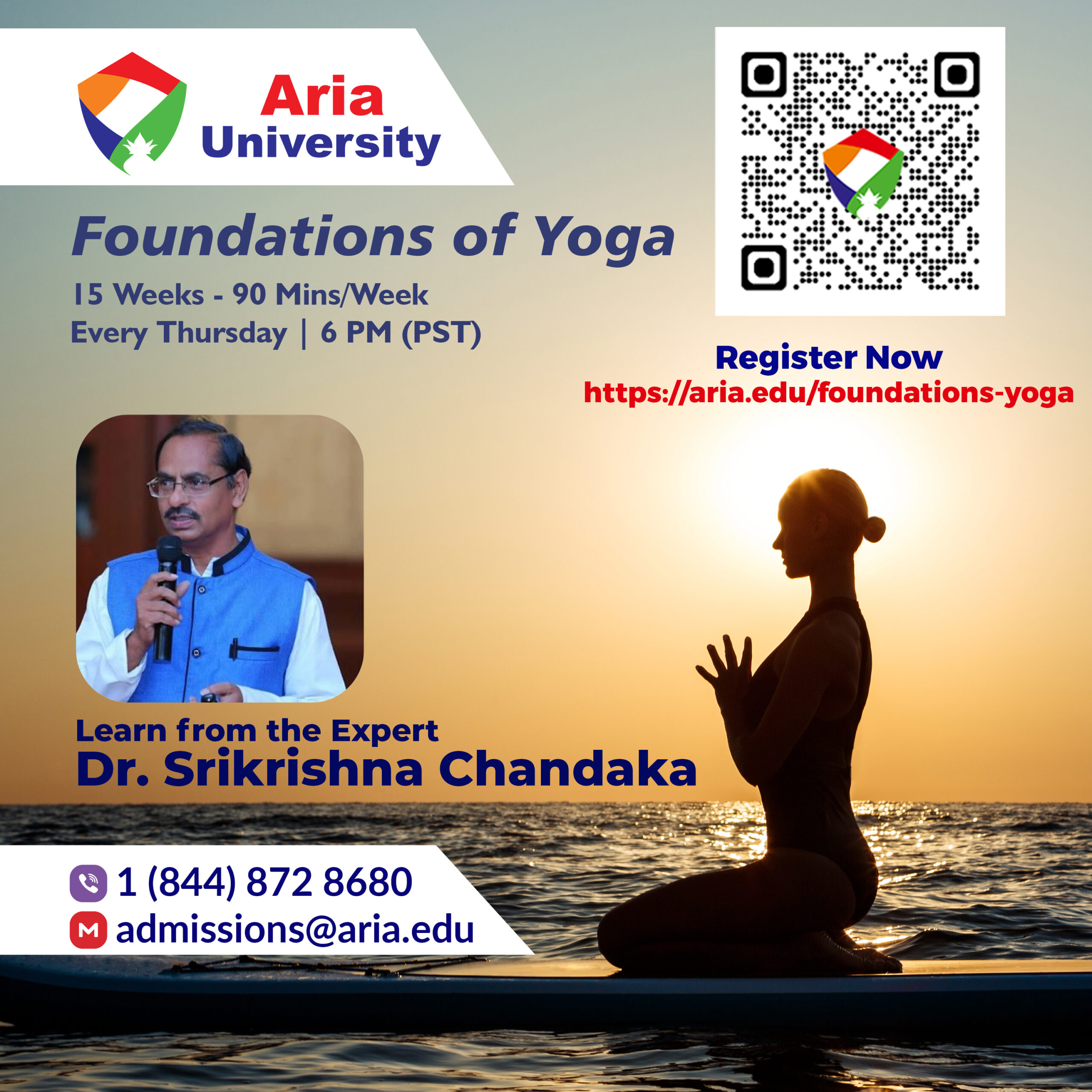 achievements and over 35 years of dedicated service to the field.Holding a Ph.D. in Yoga and an M.D. in Alternative Medicine, he seamlessly integrates traditional wisdom with contemporary medical approaches. His multidisciplinary expertise is furtherenriched by a Postgraduate Diploma in Yoga and Sanskrit and an M.A. in Philosophy from Andhra University, reflecting hisholistic understanding of yoga’s philosophical and practical dimensions.Â
